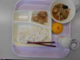 あげどりのねぎソースかけ いかとはくさいのうま煮 みかん 今日は中華です。あげど...