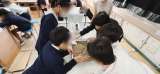5年生の様子です。 理科の学習です。流れる水の働きの実験をしていました。川...