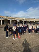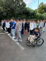17時過ぎ、無事学校に帰校しました。 お迎えの保護者の方や先生方の前で帰校式を行...