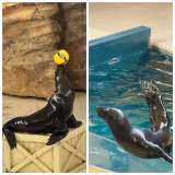 15時30分からアシカショーが始まりました。 ボールをキャッチしたり水中からジャ...