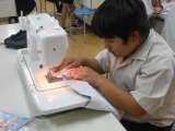 5年生はナップサック作りをしています。 自分で柄を選んで作るのですが、ミシンに苦...