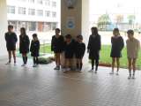 休み明けの月曜日。 当番だということを忘れることなく9Aの子どもたちは玄関前に立...