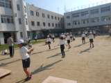 15分の休み時間に運動場に出て子どもたちが一斉になわとびをしました。