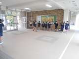 1班の子どもたちが元気にあいさつをしています。 早く登校した子どもたちは、運動場...