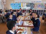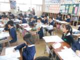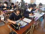 11月18日に6年生は習字をしました。集中して「温かい心」と書いてます。とめ!は...