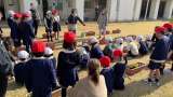 2年生の様子です。 国語の学習です。物語文の読み取りで、先生が文章を動作で表...