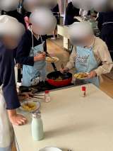 6年 調理実習 ジャガイモ、玉ねぎ、ベーコンを手際よく炒めていました。 グル...