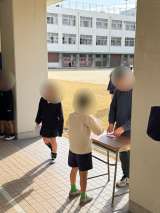 代表委員会の発表 学校のきまりについて、マル、バツで答えるクイズを出題していま...
