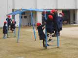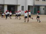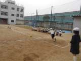 3年生、体育の時間に校庭で【ドンピーボール】をやっていました! ドン!と、蹴っ...
