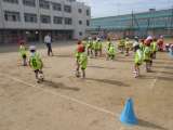 男女別、組対抗のボールとりが行われました。 勝つのはどっちかな?