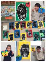本日の図工は絵の具を使って様々な表し方を勉強しました。 とても楽しそうに筆や段ボ...