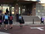 5年生の様子です。 体育の学習で、跳び箱運動です。自分で高さを選んで開脚跳び...