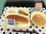 今日の献立は、わかさぎフライ、コーンと白菜のスープ、カリフラワーのサラダ、コッ...