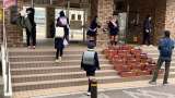 今日の献立は、押し麦のグラタン、豚肉と野菜のスープ、デコポン、おさつパン、牛乳...