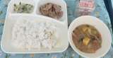 今日の献立は、豚肉の生姜焼き、さつまいもの味噌汁、切り干し大根の柚子の香和え、...