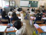 1年生の英語の授業にお邪魔しました。 元気な声と、体を使ったジェスチャーで、英語...