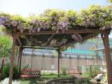 ビオトープの藤の花がみごとです。 池のまわりには、かわいい花がさいています。 青...