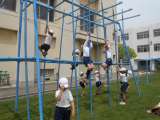 2年生の体育の様子です。固定遊具を使って体を動かしました。