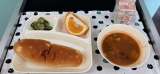 今日の献立は、ビーフシチュー、きゅうりのサラダ、甘夏かん、おさつパン、牛乳です...