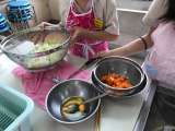 今日は、ゆで野菜サラダ作りです。野菜を切って、それぞれに合わせたゆで方で火を通し...