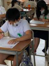4年生の算数です。テストに取り組んでいました。真剣そのものです。