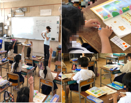 1年生の算数です。2つの数字を合わせていくつかを考えるのに、実物のブロックに置...
