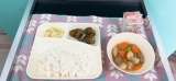今日の献立は、ケチャップ煮、三度豆とコーンのソテー、焼きかぼちゃの甘みつかけ、...