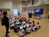元気よく学校を出発した4年生は、柴島浄水場に到着しました。 はじめにスタッフの方...