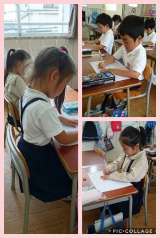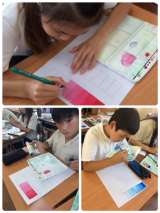 昨日の図工です。 グラデーションの練習をして、「名前の道」の作品に取り入れていま...