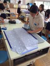 エプロン作りの真っ最中です。 アイロンをかけて折り目をつけて、しつけ縫いをしてい...