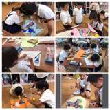 今日は初めて共同製作にチャレンジ!テーマは「おおきなさかな」です。まずは一人ずつ...