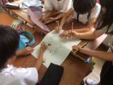 グループで歩コーンのポスターを描きました。6月の玄関掲示に続いて、4年生が7月、...