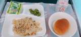 今日の献立は、 和風焼きそば、オクラの甘酢和え、抹茶大豆、1/2黒糖パン、牛乳...