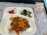 今日の献立は、ハヤシライス、ミックス海藻のサラダ、さくらんぼ、牛乳です。いただ...