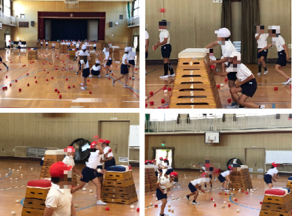 3年生です。体操服に着替えて学級活動です。体育館で雪合戦ならぬ「玉合戦」をして...