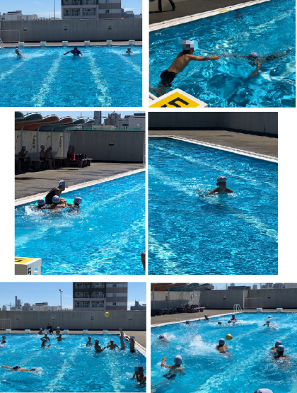 6年生のプール水泳学習です。小学校最後のプールの時間です。2組に分かれて対抗戦...