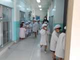 教室まで、慎重に運びます。 大きいおかずや牛乳を運ぶ人は、大変です。