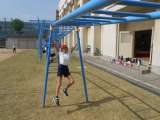 久しぶりにうんていに挑戦してみたら二段飛ばしができたので、子どもたちに自慢してみ...