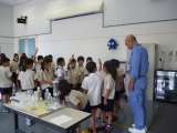体育館から歓声が聞こえてきます。 何かなとのぞいてみると・・・。 3年生が理科「...