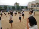 雨が止んだので、応援団が放課後運動場で練習しました。真剣です!