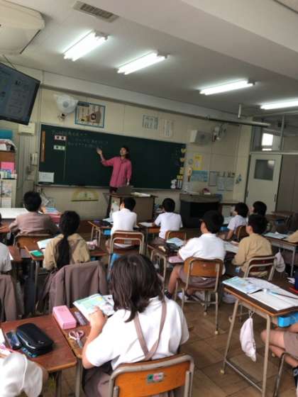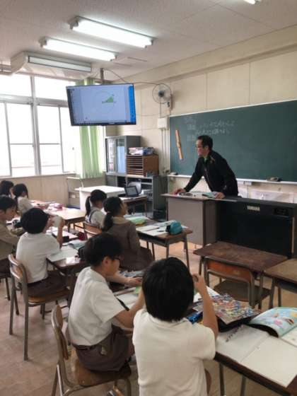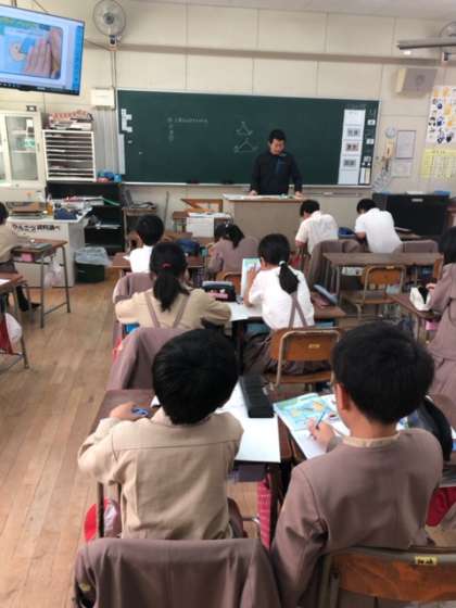 4年生は、「角の大きさ」の単元について、3学級を4つに分けて、コース別で学習をしています。少ない人数で学習することで、質問がしやすくなります。また、指導者も児童のつまづきを見つけやすくなり、きめ細かく指導を行っています。