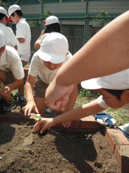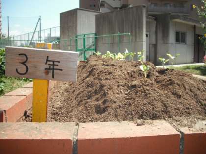 食育の一環で、3年生はブロッコリーを植えました。順調に育てば12月から1月ごろに収穫できそうです。収穫したらブロッコリーをベーコン巻にして食べる予定です。