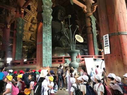 5月10日(金)は5年生の遠足でした。奈良公園は、遠足、修学旅行、観光客のみなさんで人がいっぱいでした。帰りに興福寺の五重の塔も見学しました。