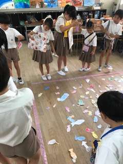 たてわり班に分かれ、お店の運営役とお客さんに分かれてゲームを楽しみました。