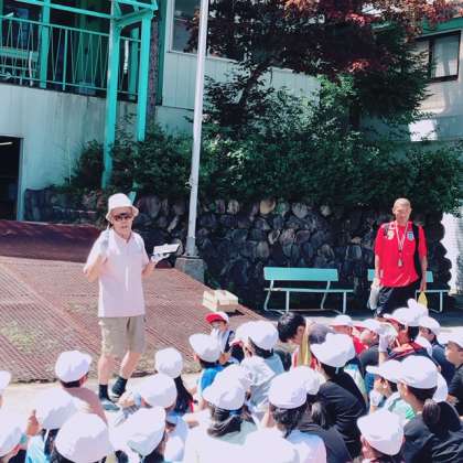 避難訓練が終わって、そのまま焼き板づくりを行います。