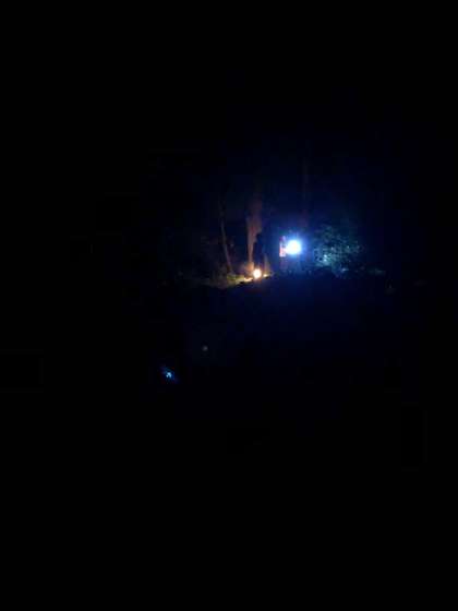 トーチの灯火だけを頼りに森の中をナイトウォークしました。途中で森の妖精や元気ですかおじさんが登場して驚いていました。