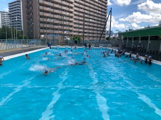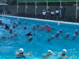 9月6日(金)、学校のプールおさめでした。3時間目に1年生は、今年最後の水泳の学習を行いました。1学期にやったことをできるようになったか確かめながら水遊びをしました。「クラゲ浮き20秒できたよ」といった声が上がっていました。