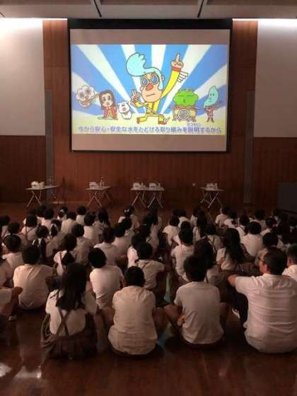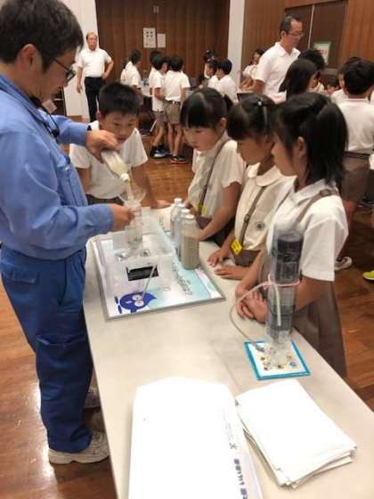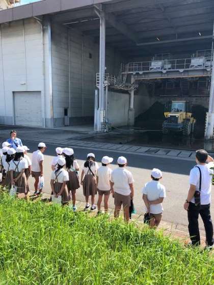 9月20日(金)、4年生は淀川区の柴島浄水場へ社会見学に行きました。晴天に恵まれ、屋外の施設をゆっくり見ることができました。水道局の方から淀川の濁った水が飲み水になるまでの仕組みを教えてもらいました。