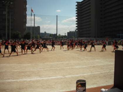 「元気!ソーラン節」の4年生の元気な声運動場に響いていました。とてもかっこよかったです。
