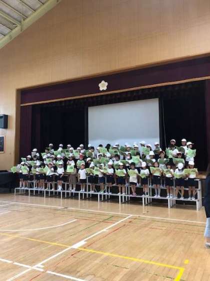 10月18日の収穫祭に向けて練習を行っています。学習園で育てたサツマイモの世話について、頑張ってきたことや苦労したことについて発表します。